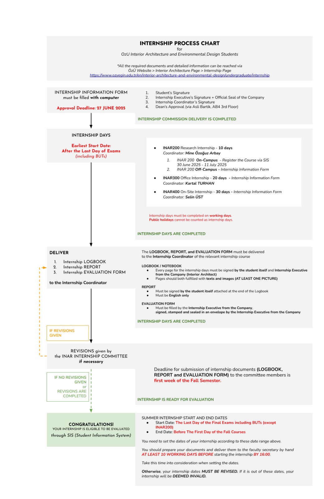 Özyeğin Üniversitesi İç Mimarlık ve Çevre Tasarımı Bölümü öğrencilerinin üç zorunlu stajı bulunmaktadır.